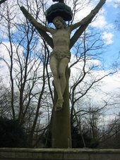 Das eindrucksvolle gotische Gabelkreuz, ein Werk des Hofbildhauers Johann Mauritz GröningerWP, wurde 1689 von Caspar Stübbe gestiftet und an der Abzweigung des „Gievenbecker Weges“ von der Landstraße nach CoesfeldWP aufgestellt.