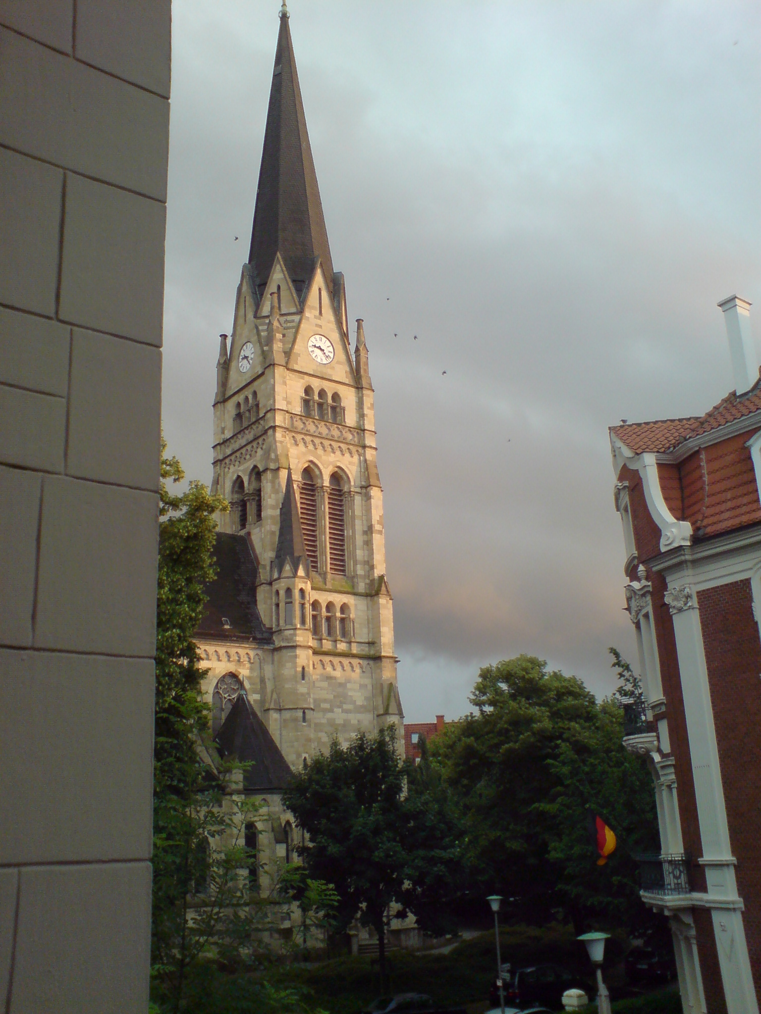 Die Kreuzkirche von der Dettenstraße aus photographiert.