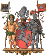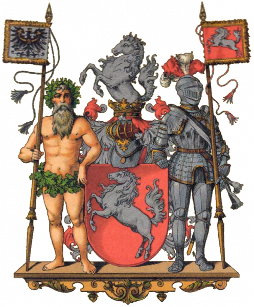 • Vollwappen der preußischen Provinz Westfalen aus dem 19. Jahrhundert; Illustration von Professor Hugo Gerard Ströhl (1851-1919)