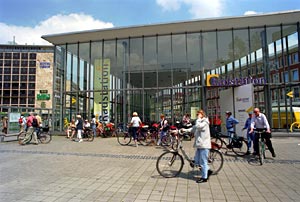 Die Radstation vor dem Hauptbahnhof ist mit 3.300 Stellplätzen die größte in Deutschland. Am 29. Mai 1998 wurde der Grundstein gelegt, am 12. Juni 1999 konnte das Fahrradparkhaus der Öffentlichkeit übergeben werden. Vor allem Pendler nutzen seitdem die Möglichkeit, ihr Fahrrad überdacht und bewacht abzustellen. Neben den Stellplätzen bietet die Radstation auch einen Shop, eine Werkstatt, einen Fahrradverleih, auch von E-Bikes, und eine Fahrradwaschanlage, sowie Sonderstellplätze für Anhänger, Kinderanhänger, Tandems und Liegeräder. Als Betreiber von Deutschlands größter Radstation fungiert die G. Hundt KG.