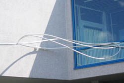 Er wählte für Münster dünnes Eisenrohr mit einem hellen Ölfarbenanstrich und bog es zu einem sich über etwa neun Meter ausbreitenden Paar von Linien, das sich von den Seiten zur Mitte hinschwingt und sich dort zu einer Doppelschlinge formt, die als zentrales Element den Raum so gliedert, dass die seitlichen Rohrstränge von dieser Mitte auszugehen scheinen. Die schlanke Skulptur scheint den Verlauf der nicht geradlinigen Trassenführung, mit der die hier kreuzenden Straßen Neubrückenstraße, Voßgasse und An der Apostelkirche aufeinander treffen, nachzuvollziehen, wobei die Schleifenform in der Mitte der Plastik die zentrale Rundung des Theaterbaus aufnimmt. Der räumliche Eindruck wird durch den Schattenfall verstärkt, den die Elemente der Plastik bei unterschiedlichem Lichteinfall zu den verschiedenen Tageszeiten auf dem Mauerwerk der Fassade hervorrufen.