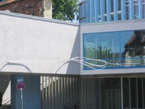 Die Raum-Zeitplastik ist eine ausladende Skulptur, die der Düsseldorfer Künstler Norbert Kricke (*1922 - †1984) 1955/56 für den Eingangsbereich der Städtischen Bühnen an der Neubrückenstraße entworfen und realisiert hat.