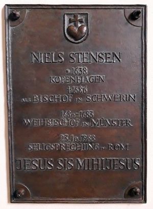Erinnerungstafel für Bischof Niels Stensen in der Maximuskapelle des Domes (Quelle:wikimedia.com; Foto: PicturePrince)