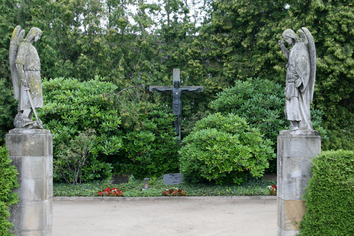 Gemeinsame Grabstätte von Peter Wust und Ferdinand Vorholt (rechts, vor dem Kreuz)auf dem (katholischen) Friedhof in Mecklenbeck